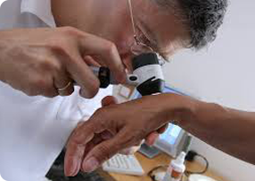Der Hautarzt erfragt in dieser professionellen Befragung alle potenziell medizinisch relevanten Informationen vom Patienten, mit dem Ziel, die Krankengeschichte und Risikofaktoren sowie die Beschwerden des Patienten im Rahmen der möglichen Krankheit (Hautkrebs/ Merkelzellkarzinom) zu erfassen. Dieses Gespräch mit dem Patienten ist wesentliche Grundlage der Diagnose.